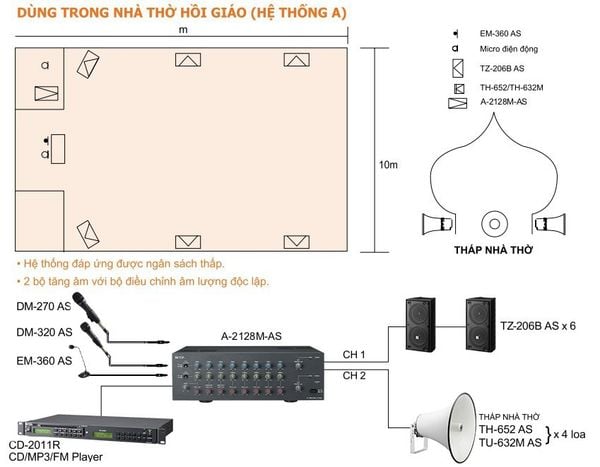 Tăng âm công suất liền mixer A-2128M-AS chất lượng cao,đáp ứng nhu cầu sử dụng trong nhà thờ hồi giáo hoặc các nơi tôn giáo, thờ cúng khác.